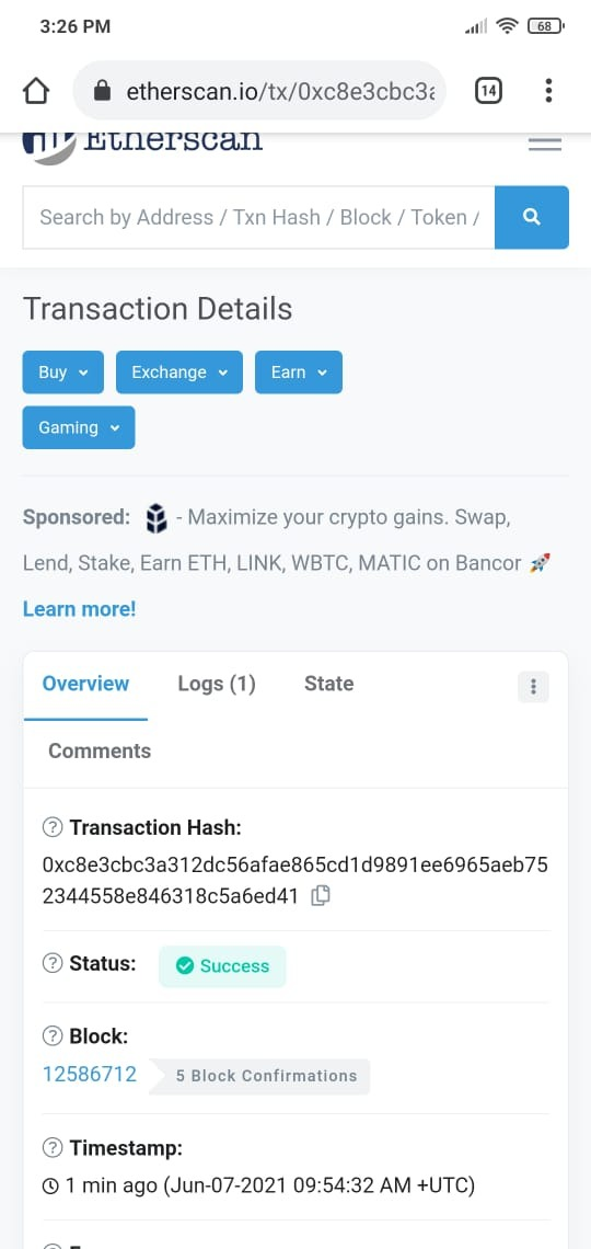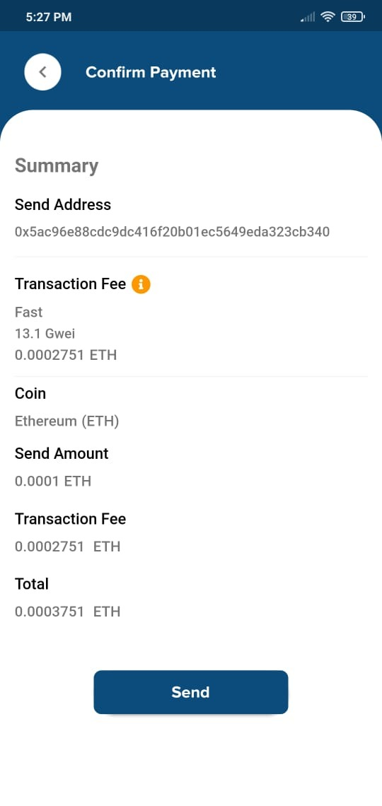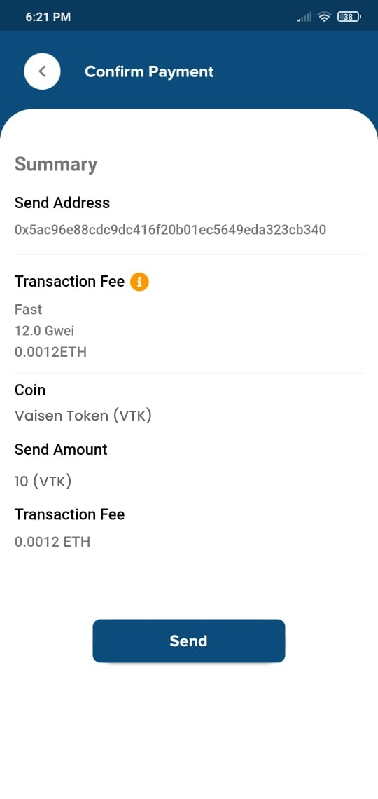 09. 이제 VTK를 보내려면 보내기를 클릭하고 주소, 값을 입력하고 계속을 클릭합니다.