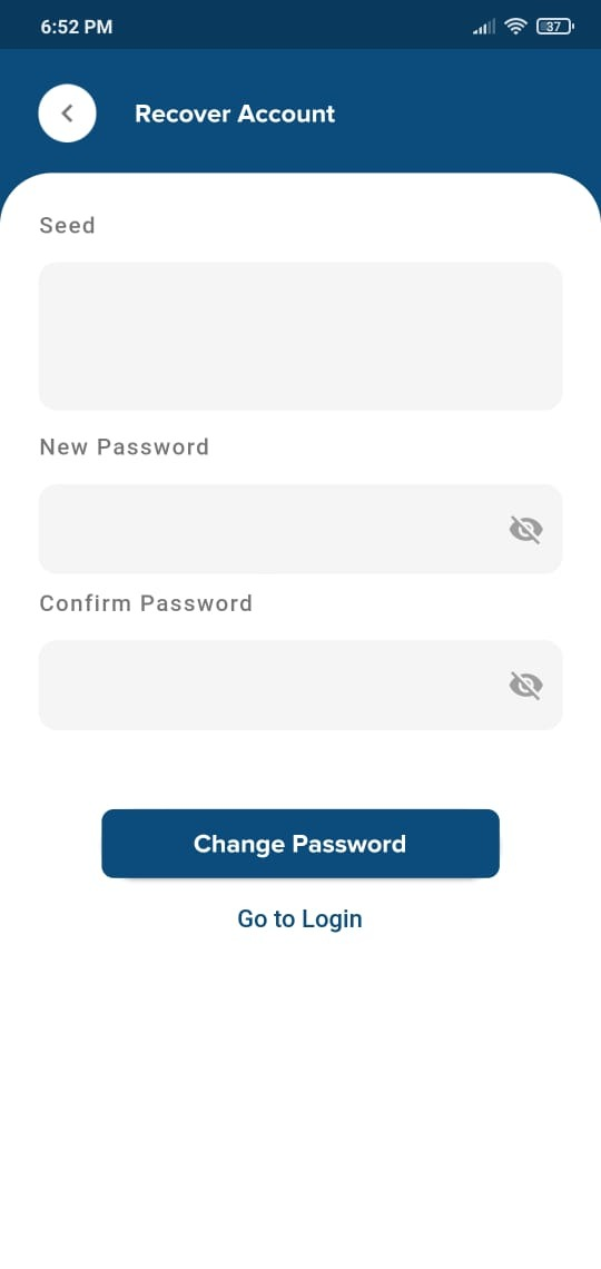 20. 바이즌 지갑 계정을 복구하려면 복구 로그인 페이지 아래의 계정 그런 다음시드를 입력하여 복구 계정을 만들고 새 비밀번호를 설정하고 확인을 클릭합니다.