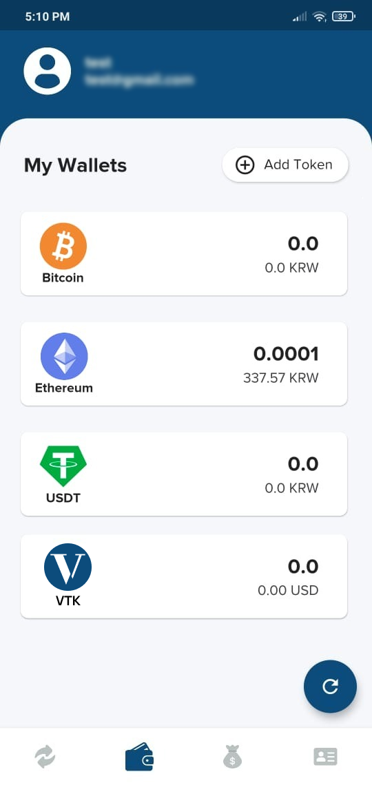 VTK 잔액은 자산 메인 페이지에서 자동으로 업데이트됩니다.