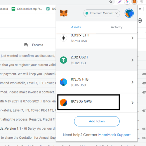 08. 이제 구매 후 메타마스크에서 GPG 잔액이 업데이트됩니다.