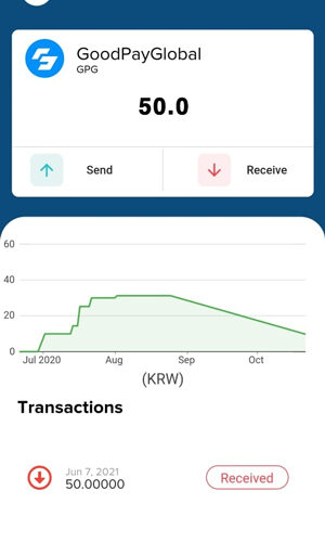 받은 GPG 잔액은 착한페이 앱을 확인하실 수 있습니다.