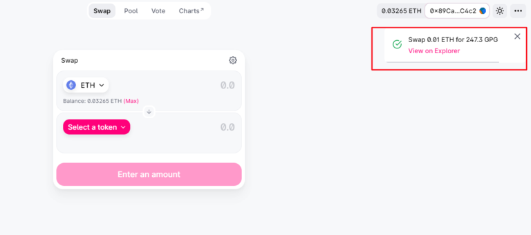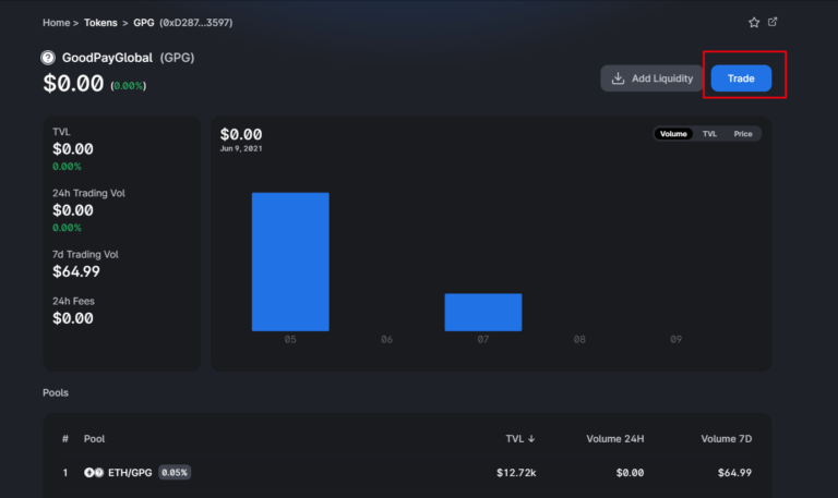 01. 링크를 클릭하면 Uniswap 사이트에서 모든 GPG 토큰 정보를 볼 수 있습니다.